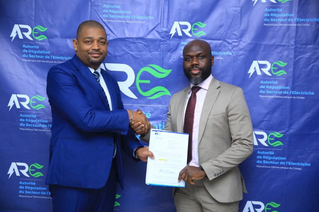 Au nom du Directeur général de l’ARE, Sandrine Mubenga, le DGA Marco Kuyu a remis les documents nécessaires donnant l’aval à MIGHTY LAND entre les mains de l’opérateur Serge Mukendi Fontshi, Directeur Exécutif de cette entreprise qui a signé un contrat avec la Minière de Bakwanga (MIBA), pour la réhabilitation de la centrale de Lubilanji.