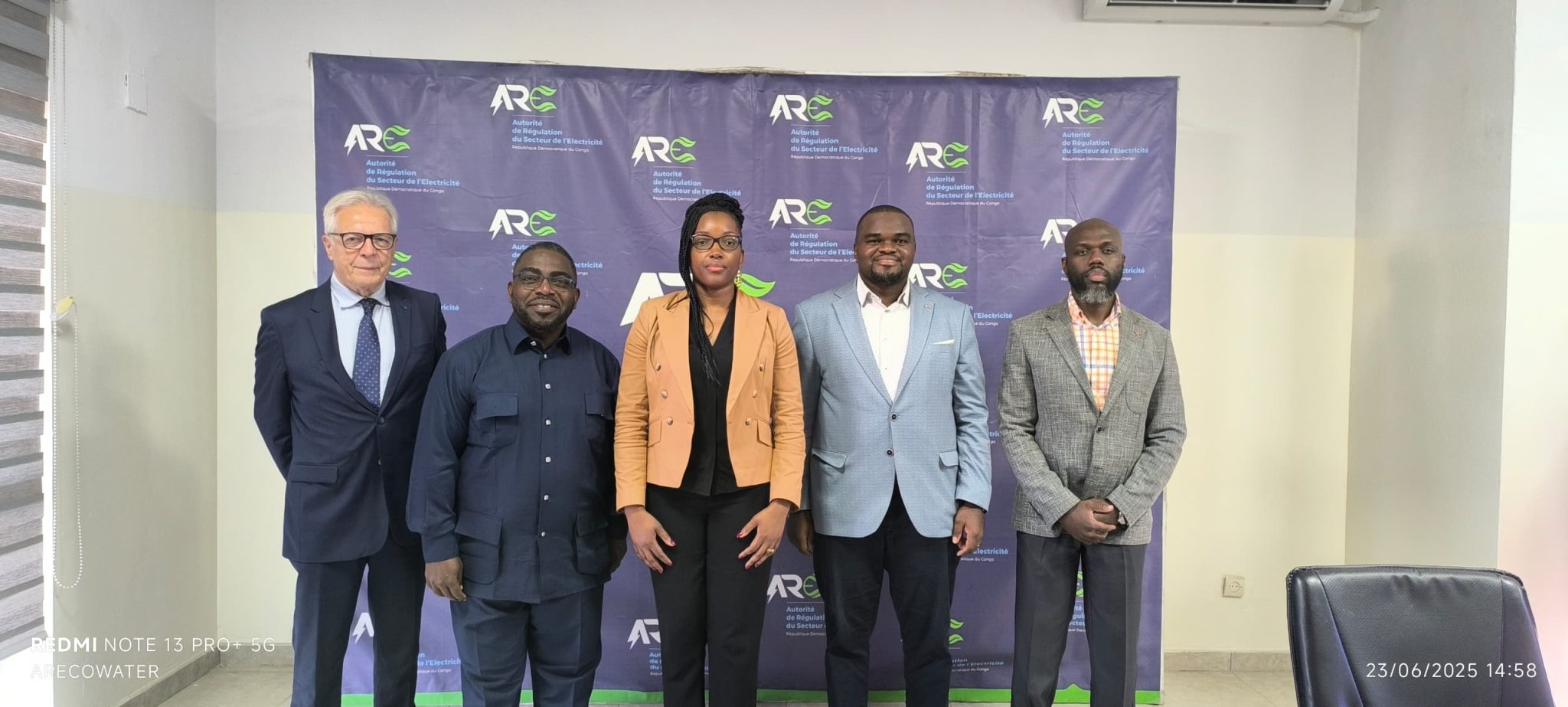 As part of the regional electricity interconnection project between the Democratic Republic of Congo, Angola, and the Republic of Congo, the Electricity Regulatory Authority (ARE), led by its CEO, Dr. Sandrine Mubenga Ngalula, met on June 23, 2025, with a joint delegation of experts from Cowater International, the Central African Power Pool (PEAC), and a representative of SNEL SA.