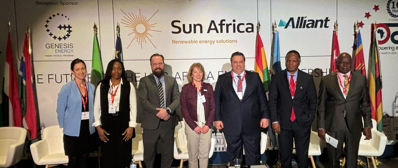 Figure 5 : Panel « Energy Cooperation: Southern Africa » au Powering Africa Summit 2025. De gauche à droite : Katie Auth, Sandrine Mubenga, Dan Klinck, Linda Habgood, Gaspar Lino, Son Altesse Royale le Prince Lonkhokhela Dlamini, et Son Excellence l’Honorable July Moyo.